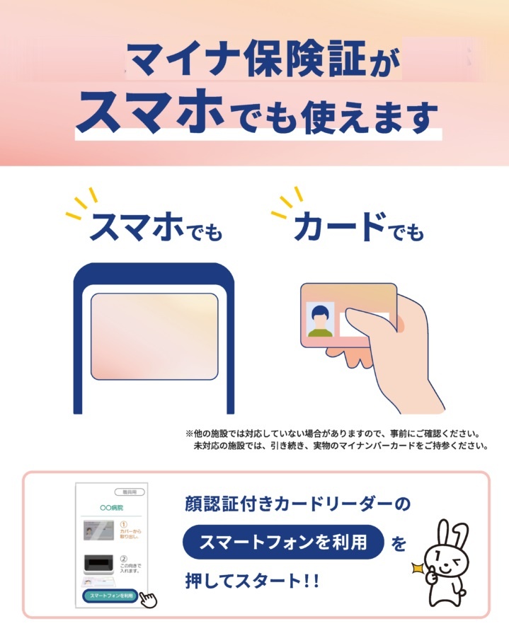 ※公費負担受給者証・医療証については、マイナンバーカードでは確認できませんので必ず原本をお持ちください。